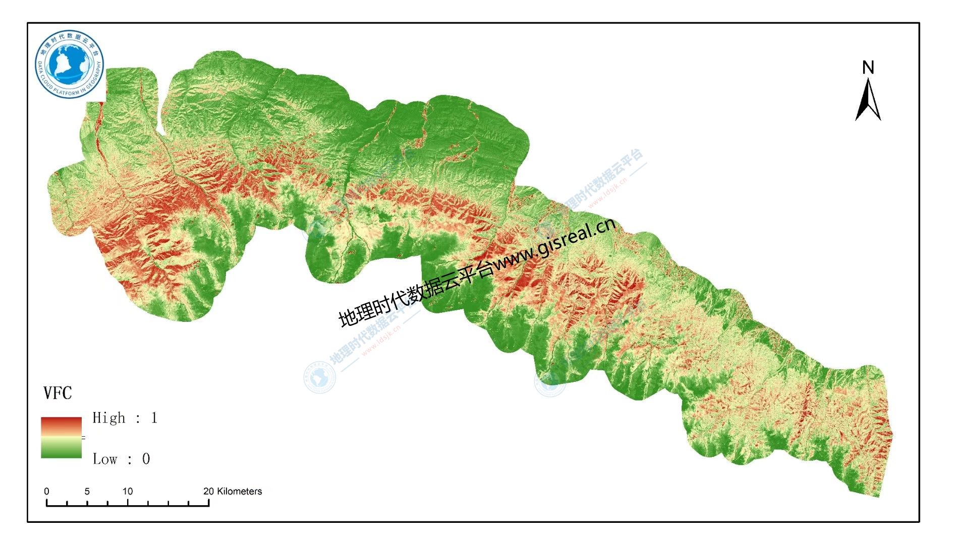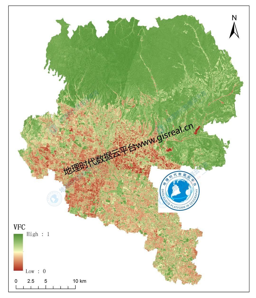 定义与意义:指植被(包括叶、茎、枝)在地面的垂直投影面积占统计区总面积的百分比,是刻画地表植被覆盖的重要参数,也是指示生态环境变化的重要指标之一,常用于植被变化、生态环境研究、水土保持、气候等方面。 计算方法:通常基于像元二分模型,公式为\(VFC=(NDVI - NDVI_{soil})/(NDVI_{veg}-NDVI_{soil})\)。在 1 米、2 米分辨率下,能更细致地呈现植被覆盖度的空间变化,对于研究局部生态环境变化、城市植被规划等具有重要意义。例如,可以准确分析城市中不同街区的植被覆盖情况,为城市绿化规划提供依据。